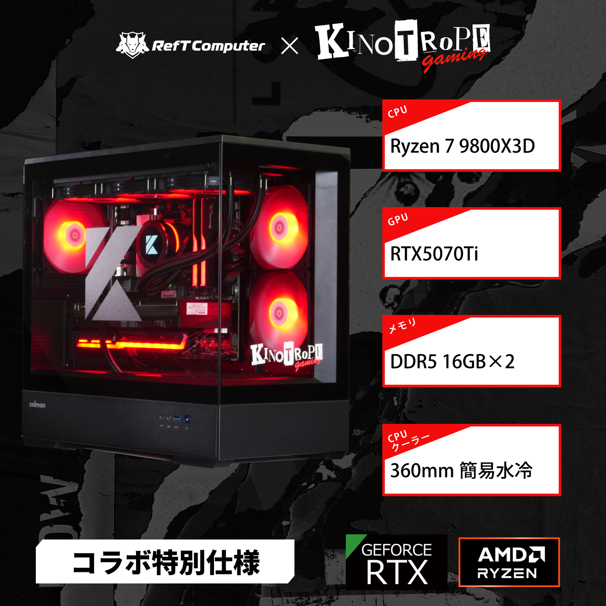 【KINOTROPE gamingコラボモデル】P30 Black/AM5-Ryzen 7 9800X3D/RTX5070Ti搭載モデル